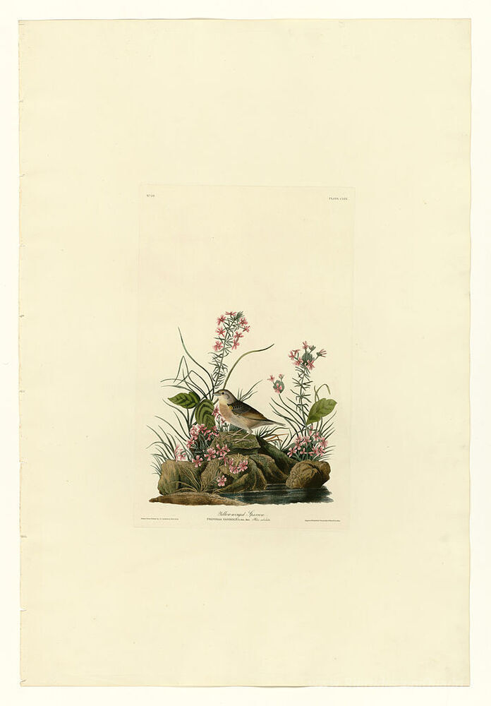 Ti offriamo una riproduzione artigianale su tela dell'opera famosa 'Piastra 130 Giallo-alato Sparrow' di John James Audubon, dal Museo delle Riproduzioni.