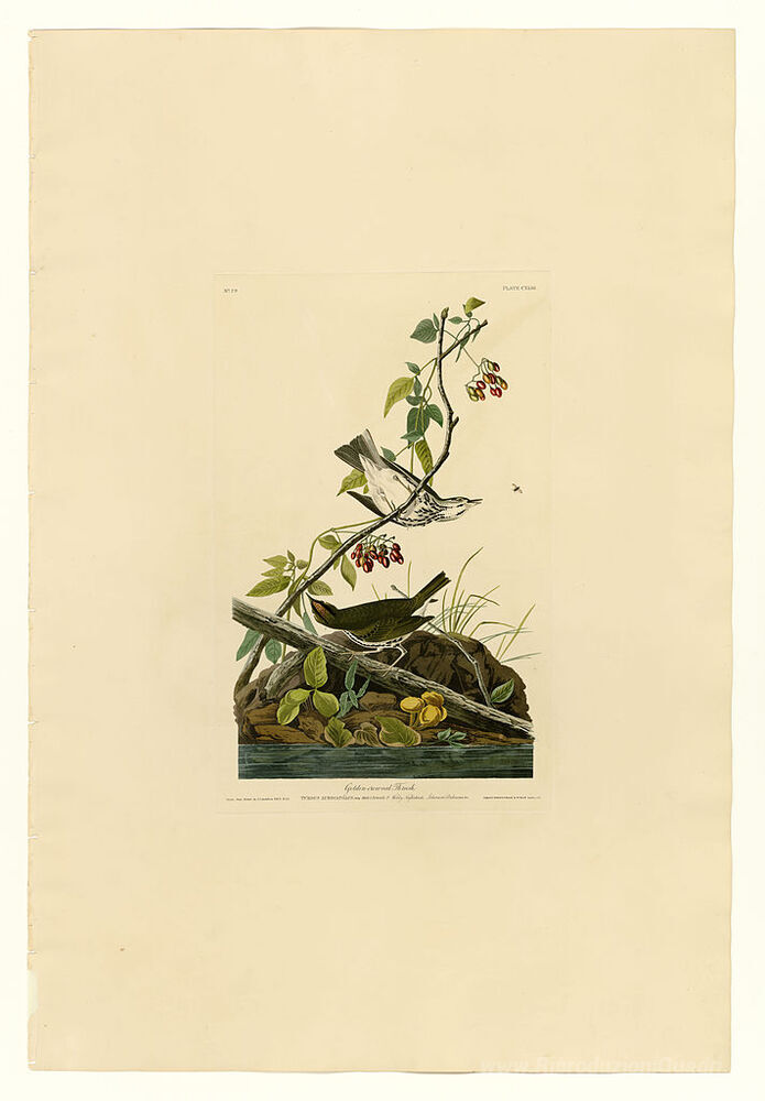Ti offriamo una riproduzione artigianale su tela dell'opera famosa 'Piastra 143 Golden-crowned Tordo' di John James Audubon, dal Museo delle Riproduzioni.