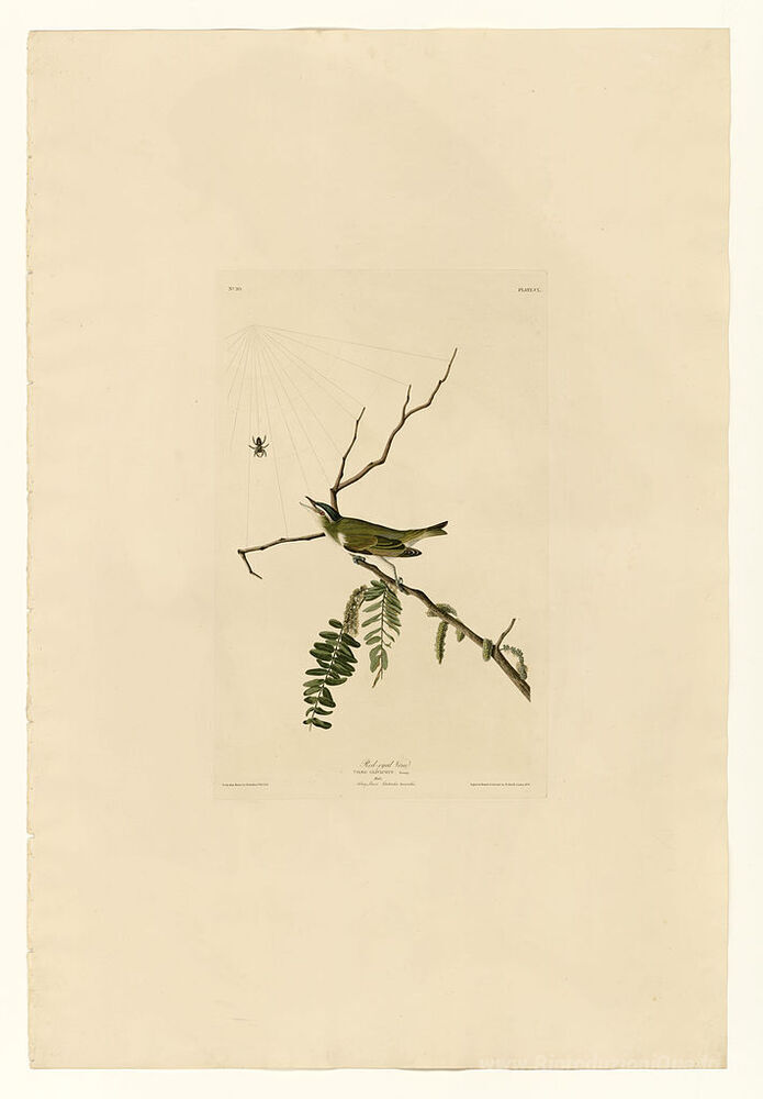 Ti offriamo una riproduzione artigianale su tela dell'opera famosa 'Piastra 150 dagli occhi rossi Vireo' di John James Audubon, dal Museo delle Riproduzioni.