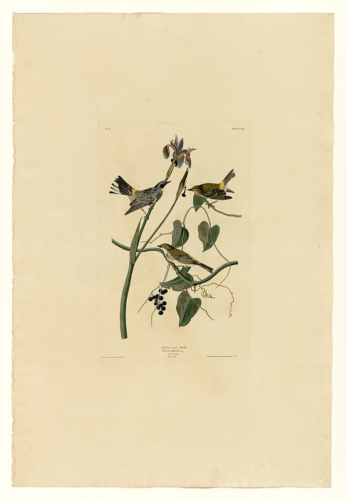 Ti offriamo una riproduzione artigianale su tela dell'opera famosa 'Piastra 153 Yellow-corona Warbler' di John James Audubon, dal Museo delle Riproduzioni.