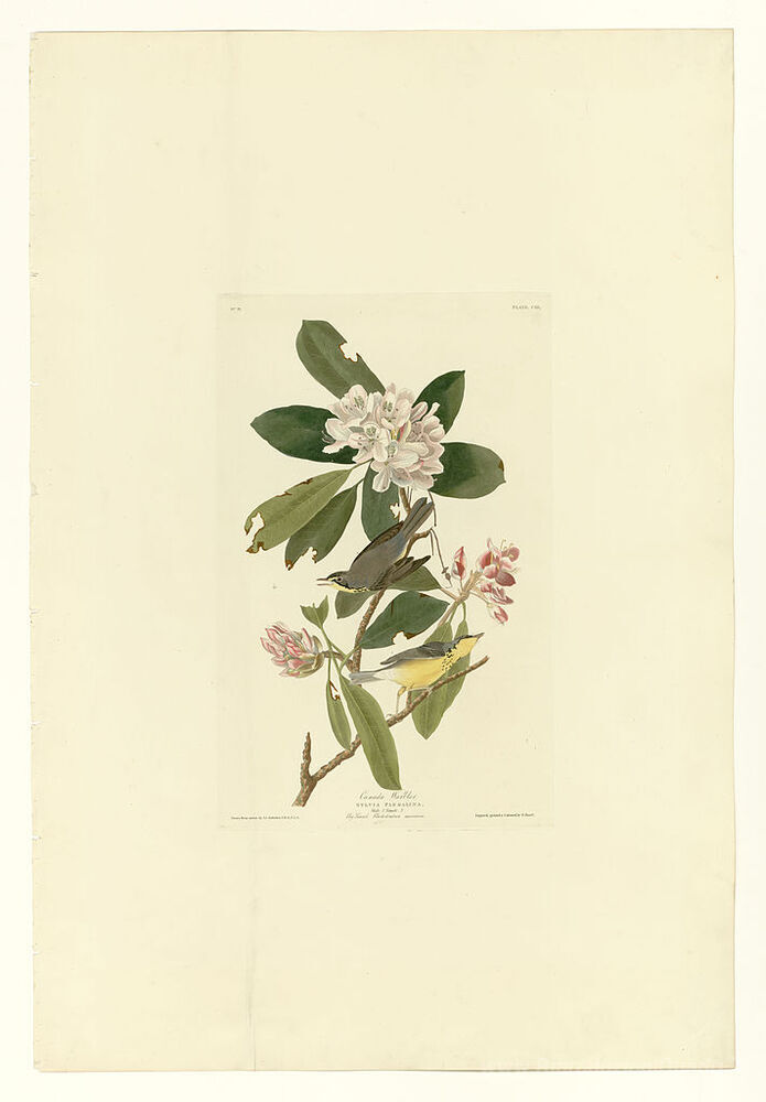 Ti offriamo una riproduzione artigianale su tela dell'opera famosa 'Piatto 103 Canada Warbler' di John James Audubon, dal Museo delle Riproduzioni.