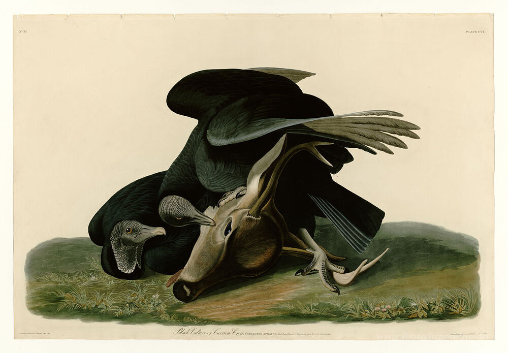 Ti offriamo una riproduzione artigianale su tela dell'opera famosa 'Piatto 106 Avvoltoio nero o Cornacchia' di John James Audubon, dal Museo delle Riproduzioni.