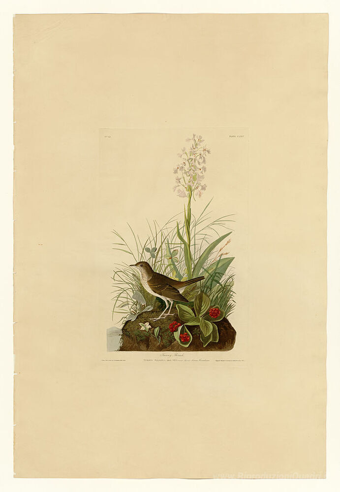 Ti offriamo una riproduzione artigianale su tela dell'opera famosa 'Piatto 164 Tawny Thrush' di John James Audubon, dal Museo delle Riproduzioni.