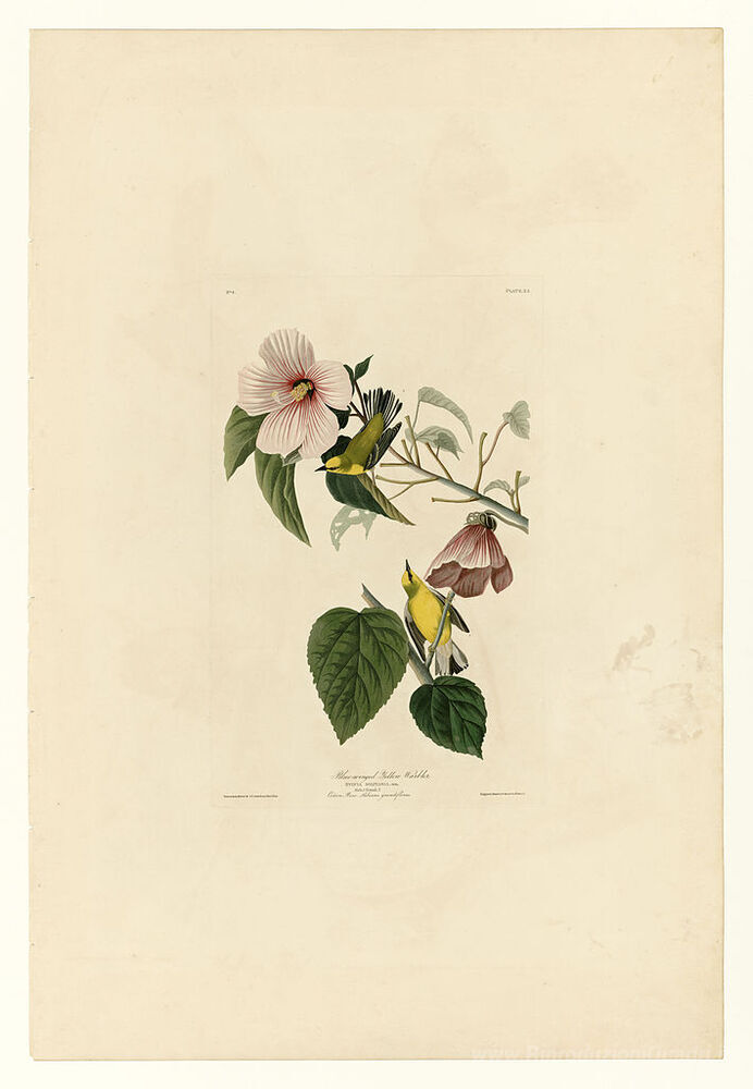 Ti offriamo una riproduzione artigianale su tela dell'opera famosa 'Piatto 20. Blu-alato Giallo Warbler' di John James Audubon, dal Museo delle Riproduzioni.