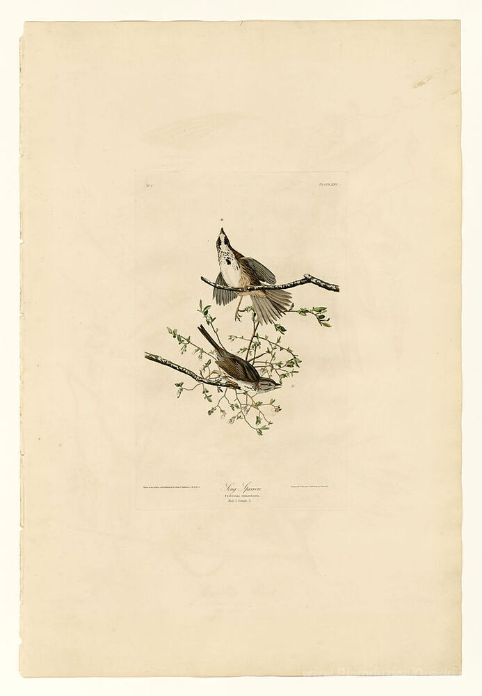 Ti offriamo una riproduzione artigianale su tela dell'opera famosa 'Piatto 25. Passero di canzone' di John James Audubon, dal Museo delle Riproduzioni.