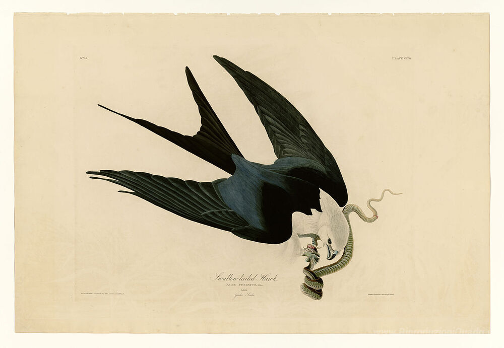 Ti offriamo una riproduzione artigianale su tela dell'opera famosa 'Piatto 72 rondine Falco dalla coda' di John James Audubon, dal Museo delle Riproduzioni.