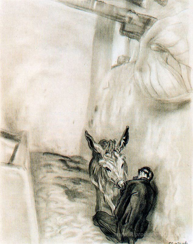 Ti offriamo una riproduzione artigianale su tela dell'opera famosa 'Platero. Il fratello cullante sonno.' di Carlos Saenz de Tejada, dal Museo delle Riproduzioni.