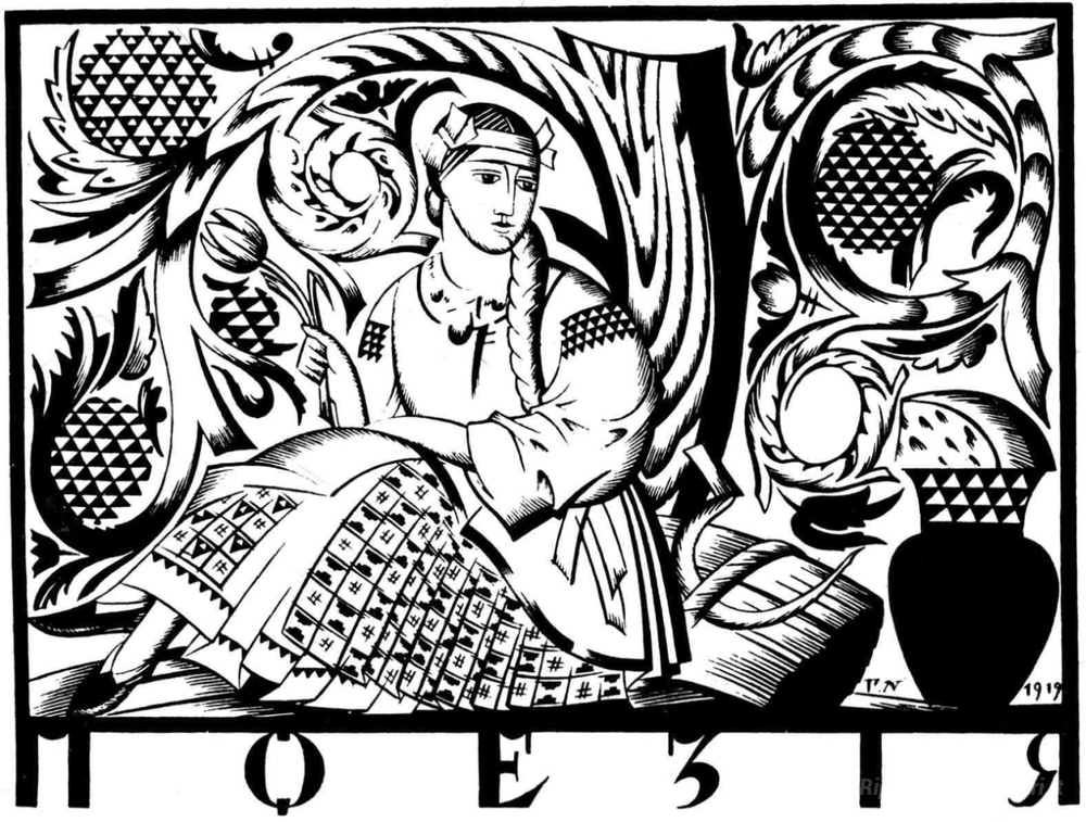 Ti offriamo una riproduzione artigianale su tela dell'opera famosa 'Poesia. Copricapo alla rivista 'Arte'.' di Heorhiy Narbut, dal Museo delle Riproduzioni.