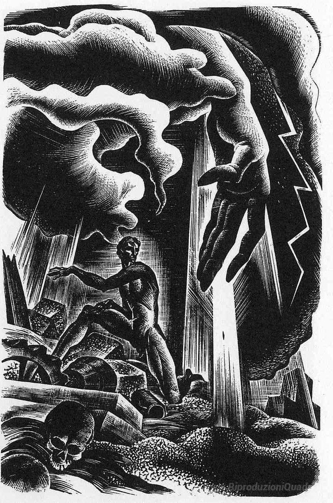 Ti offriamo una riproduzione artigianale su tela dell'opera famosa 'Preludio a un milione di anni' di Lynd Ward, dal Museo delle Riproduzioni.