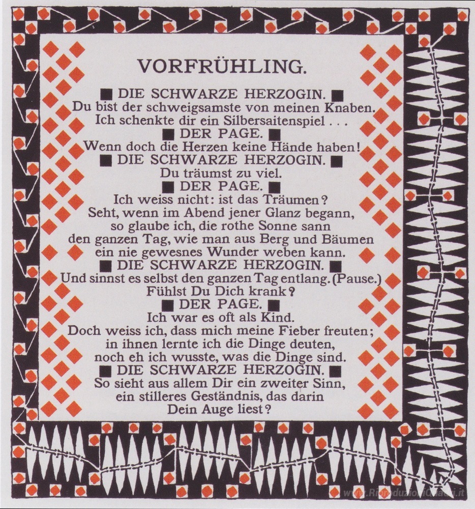 Ti offriamo una riproduzione artigianale su tela dell'opera famosa 'Primavera in anticipo. Illustrazione di una poesia di Rainer Mar' di Koloman Moser, dal Museo delle Riproduzioni.
