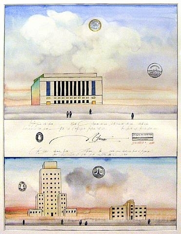 Ti offriamo una riproduzione artigianale su tela dell'opera famosa 'Progetti federali' di Saul Steinberg, dal Museo delle Riproduzioni.