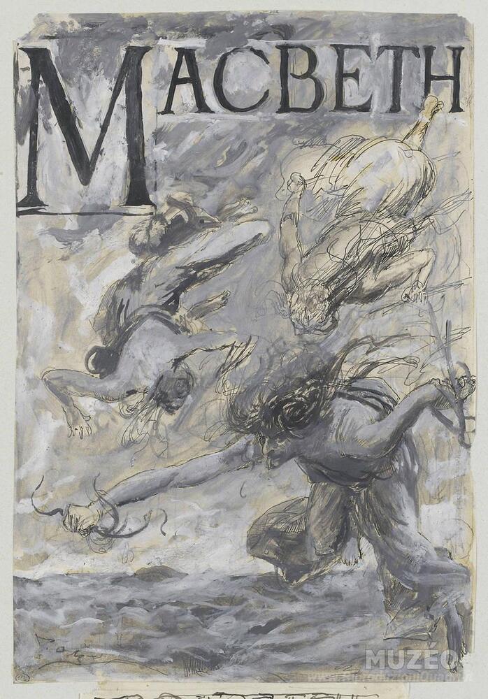 Ti offriamo una riproduzione artigianale su tela dell'opera famosa 'Projet de frontispice versare Macbeth' di Luc-Olivier Merson, dal Museo delle Riproduzioni.