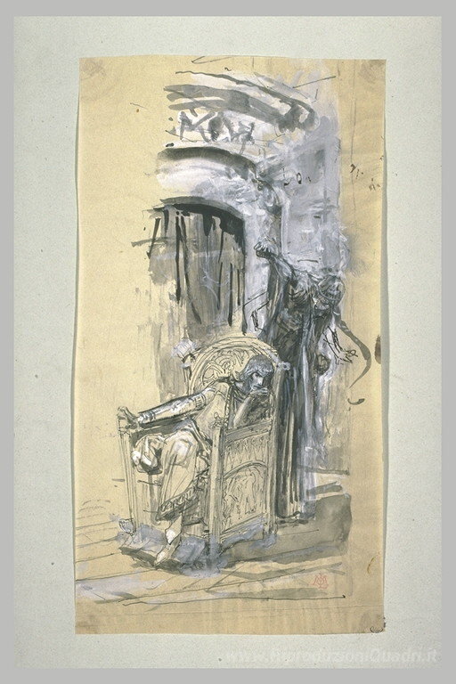 Ti offriamo una riproduzione artigianale su tela dell'opera famosa 'Projet d'illustrazione versare Macbeth-7' di Luc-Olivier Merson, dal Museo delle Riproduzioni.