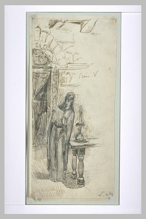 Ti offriamo una riproduzione artigianale su tela dell'opera famosa 'Projet d'illustrazione versare Macbeth-8' di Luc-Olivier Merson, dal Museo delle Riproduzioni.