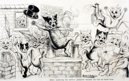 Ti offriamo una riproduzione artigianale su tela dell'opera famosa 'Quando improvvisamente il PIATTAFORMA CONFERENZA diventato tropp' di Louis Wain, dal Museo delle Riproduzioni.
