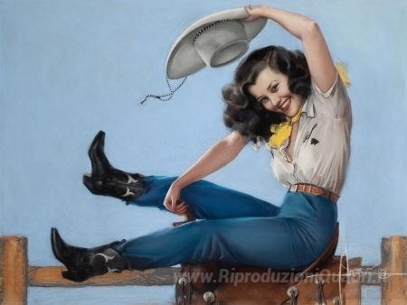 Ti offriamo una riproduzione artigianale su tela dell'opera famosa 'Ridin 'High' di Rolf Amstrong, dal Museo delle Riproduzioni.