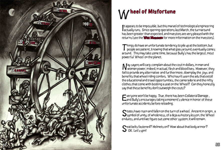 Ti offriamo una riproduzione artigianale su tela dell'opera famosa 'Ruota' di Sue Coe, dal Museo delle Riproduzioni.