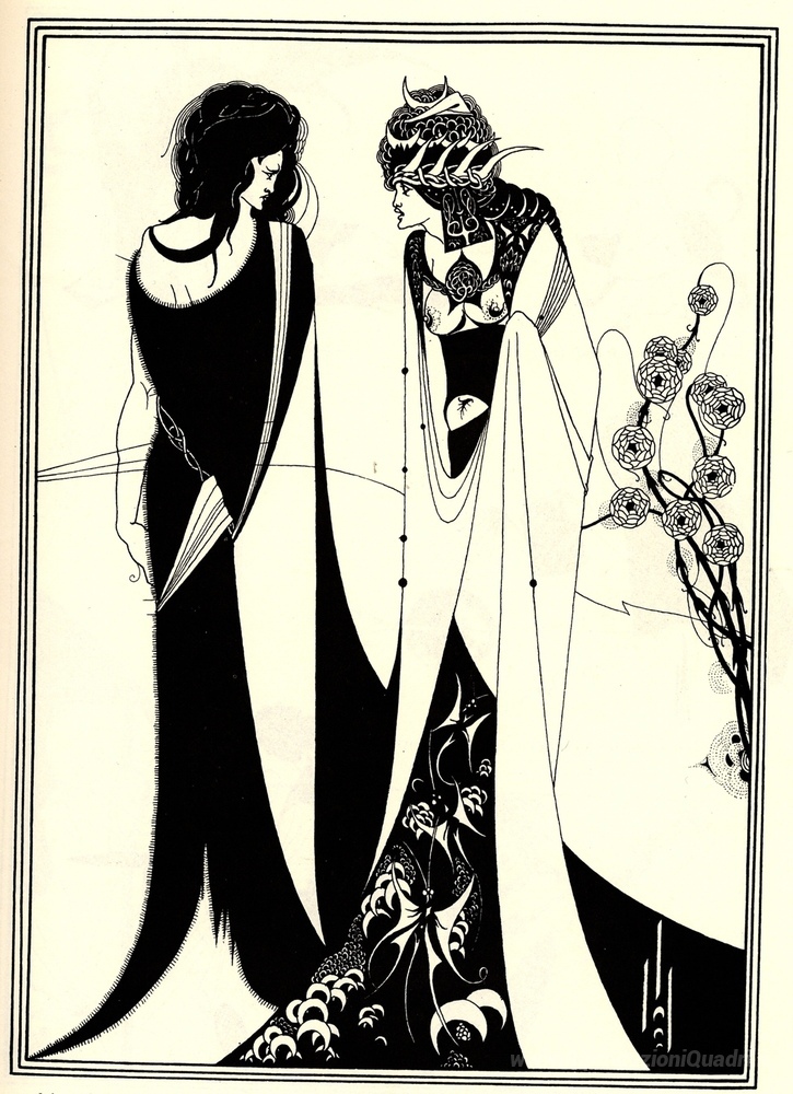 Ti offriamo una riproduzione artigianale su tela dell'opera famosa 'Salomè con la madre' di Aubrey Beardsley, dal Museo delle Riproduzioni.