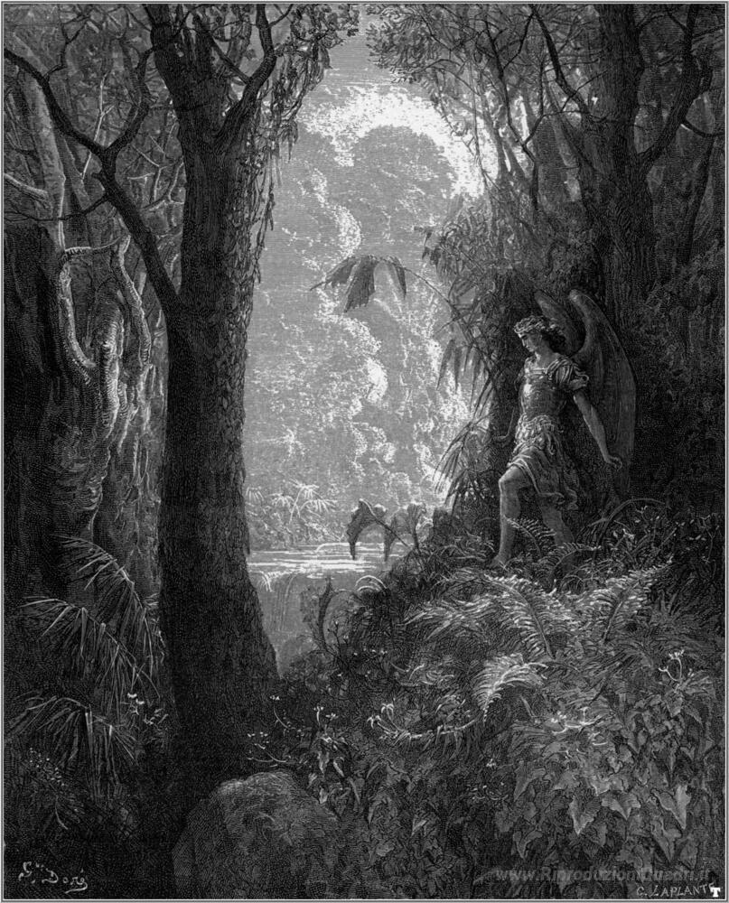 Ti offriamo una riproduzione artigianale su tela dell'opera famosa 'Satana nel Paradiso' di Gustave Dore, dal Museo delle Riproduzioni.