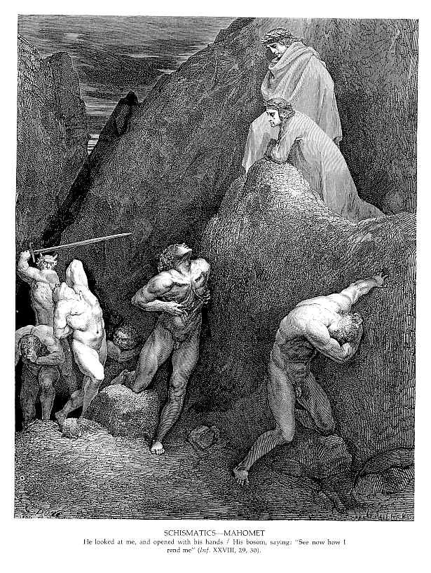 Ti offriamo una riproduzione artigianale su tela dell'opera famosa 'Scismatici - Mahomet' di Gustave Dore, dal Museo delle Riproduzioni.
