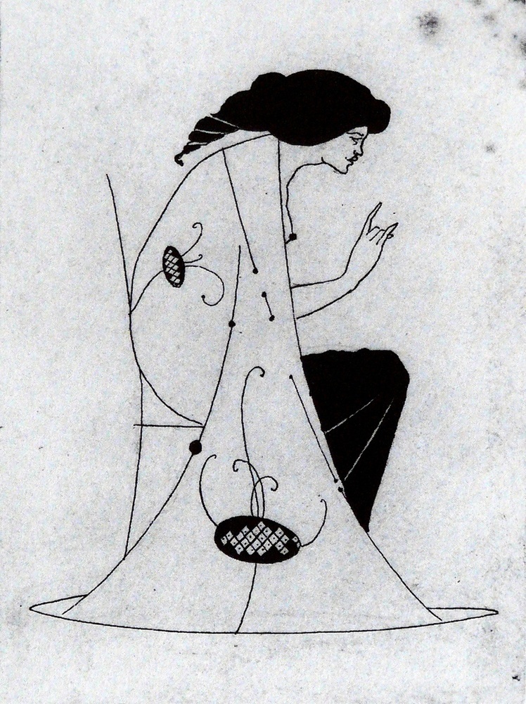Ti offriamo una riproduzione artigianale su tela dell'opera famosa 'Seduti Lady' di Aubrey Beardsley, dal Museo delle Riproduzioni.