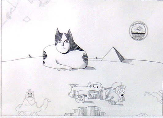 Ti offriamo una riproduzione artigianale su tela dell'opera famosa 'Sphynx' di Saul Steinberg, dal Museo delle Riproduzioni.