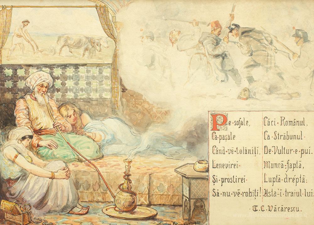 Ti offriamo una riproduzione artigianale su tela dell'opera famosa 'Storie rumeni' di Nicolae Vermont, dal Museo delle Riproduzioni.