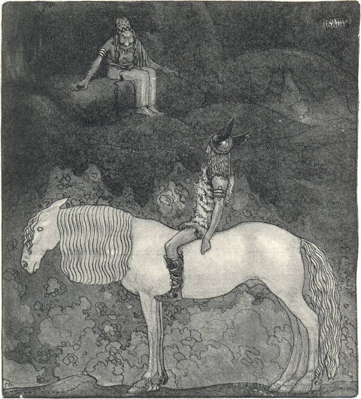 Ti offriamo una riproduzione artigianale su tela dell'opera famosa 'Svipdag parla con ??kk' di John Bauer, dal Museo delle Riproduzioni.