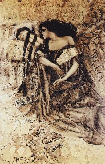 Ti offriamo una riproduzione artigianale su tela dell'opera famosa 'Tamara e Demone' di Mikhail Vrubel, dal Museo delle Riproduzioni.