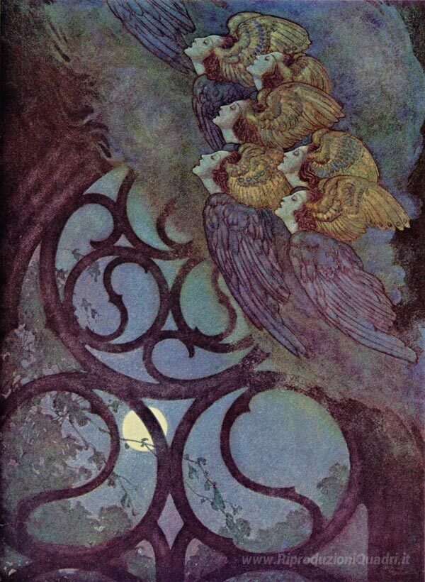 Ti offriamo una riproduzione artigianale su tela dell'opera famosa 'The Bells' di Edmund Dulac, dal Museo delle Riproduzioni.