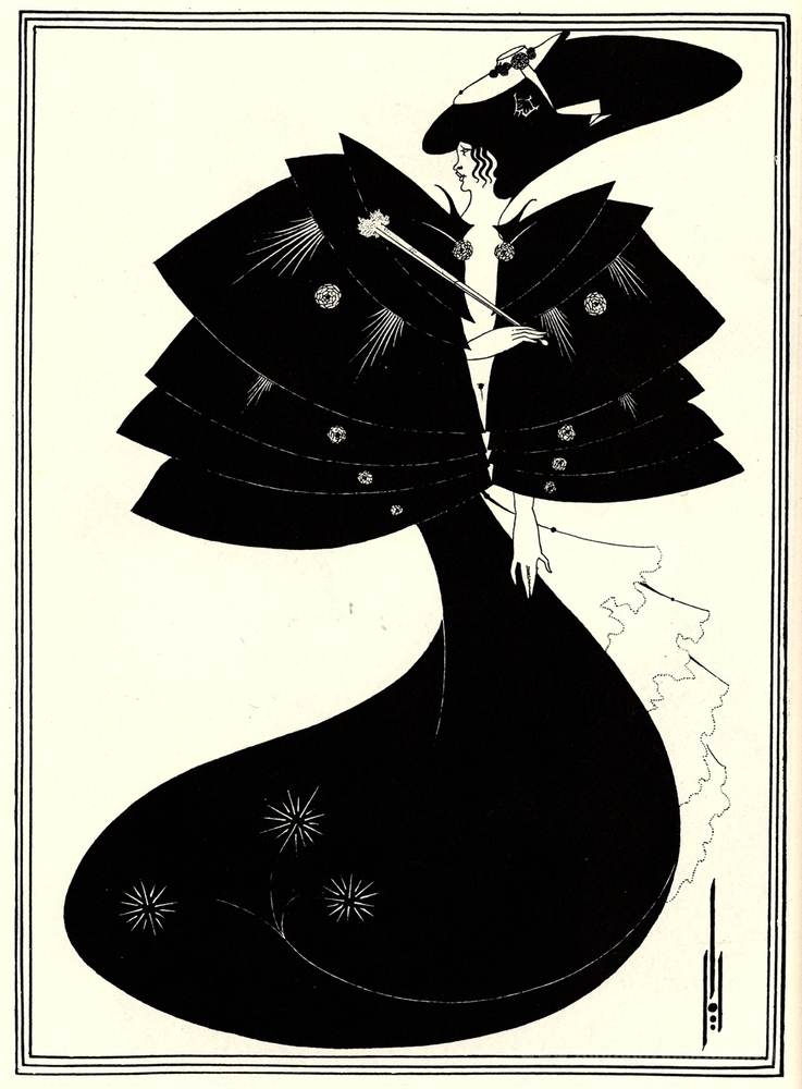 Ti offriamo una riproduzione artigianale su tela dell'opera famosa 'The Black Cape' di Aubrey Beardsley, dal Museo delle Riproduzioni.