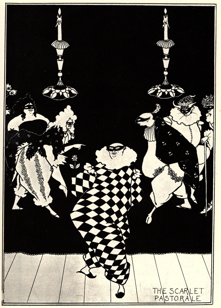 Ti offriamo una riproduzione artigianale su tela dell'opera famosa 'The Scarlet Pastorale' di Aubrey Beardsley, dal Museo delle Riproduzioni.