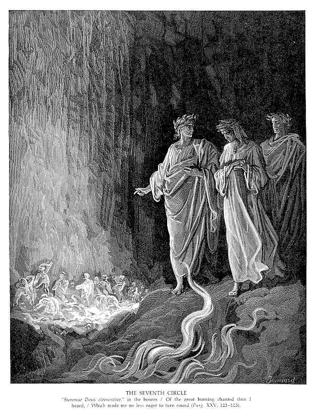 Ti offriamo una riproduzione artigianale su tela dell'opera famosa 'The Seventh Circle II' di Gustave Dore, dal Museo delle Riproduzioni.