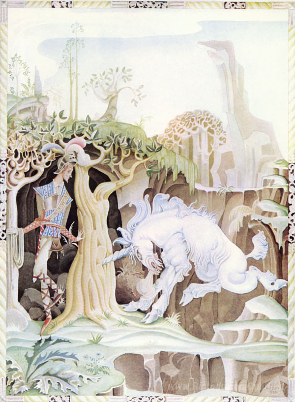 Ti offriamo una riproduzione artigianale su tela dell'opera famosa 'The Unicorn (prode piccolo sarto)' di Kay Nielsen, dal Museo delle Riproduzioni.