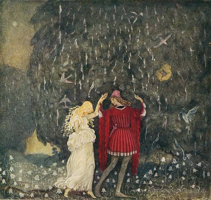Ti offriamo una riproduzione artigianale su tela dell'opera famosa 'Tomtar' di John Bauer, dal Museo delle Riproduzioni.