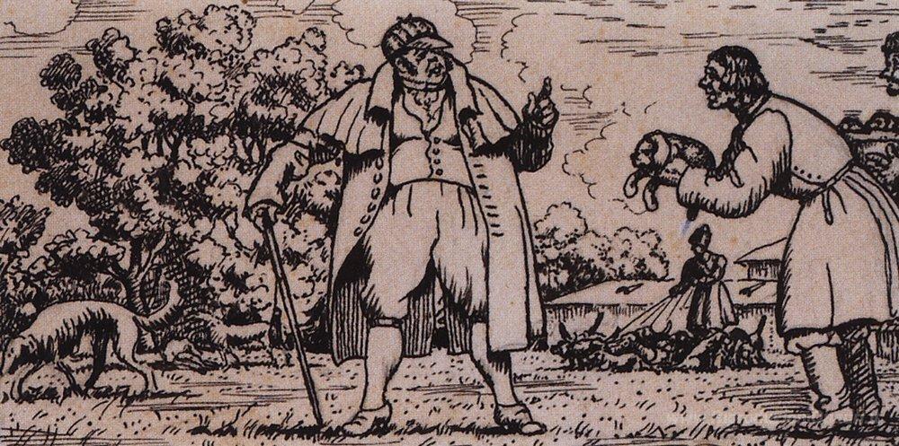 Ti offriamo una riproduzione artigianale su tela dell'opera famosa 'Troyekurov nel canile' di Boris Kustodiev, dal Museo delle Riproduzioni.