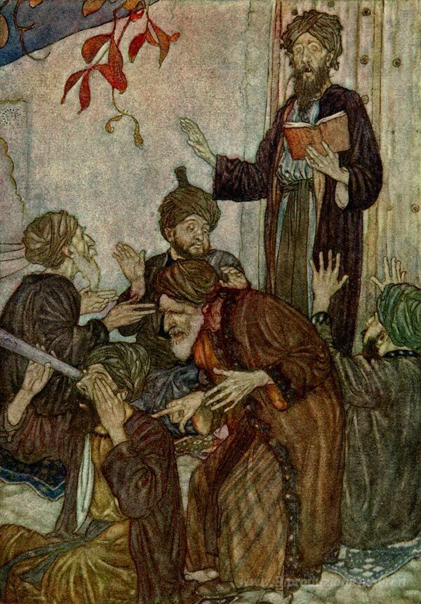 Ti offriamo una riproduzione artigianale su tela dell'opera famosa 'Tutti sono ma Storie, Il Rubaiyat di Omar Khayyam' di Edmund Dulac, dal Museo delle Riproduzioni.