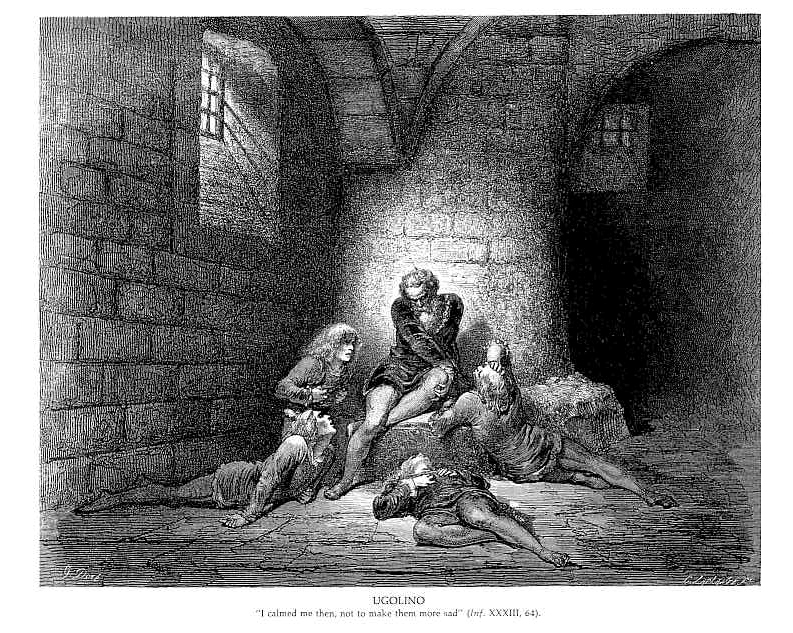 Ti offriamo una riproduzione artigianale su tela dell'opera famosa 'Ugolino' di Gustave Dore, dal Museo delle Riproduzioni.