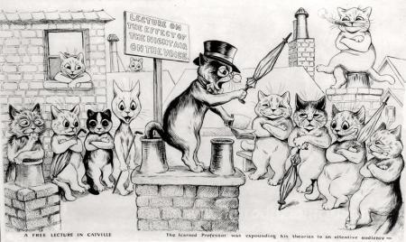 Ti offriamo una riproduzione artigianale su tela dell'opera famosa 'Un Gratuita di CATVILLE dotto professore stava esponendo le sue ' di Louis Wain, dal Museo delle Riproduzioni.
