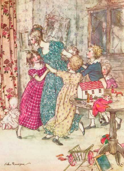 Ti offriamo una riproduzione artigianale su tela dell'opera famosa 'Un gruppo arrossata e chiassoso' di Arthur Rackham, dal Museo delle Riproduzioni.