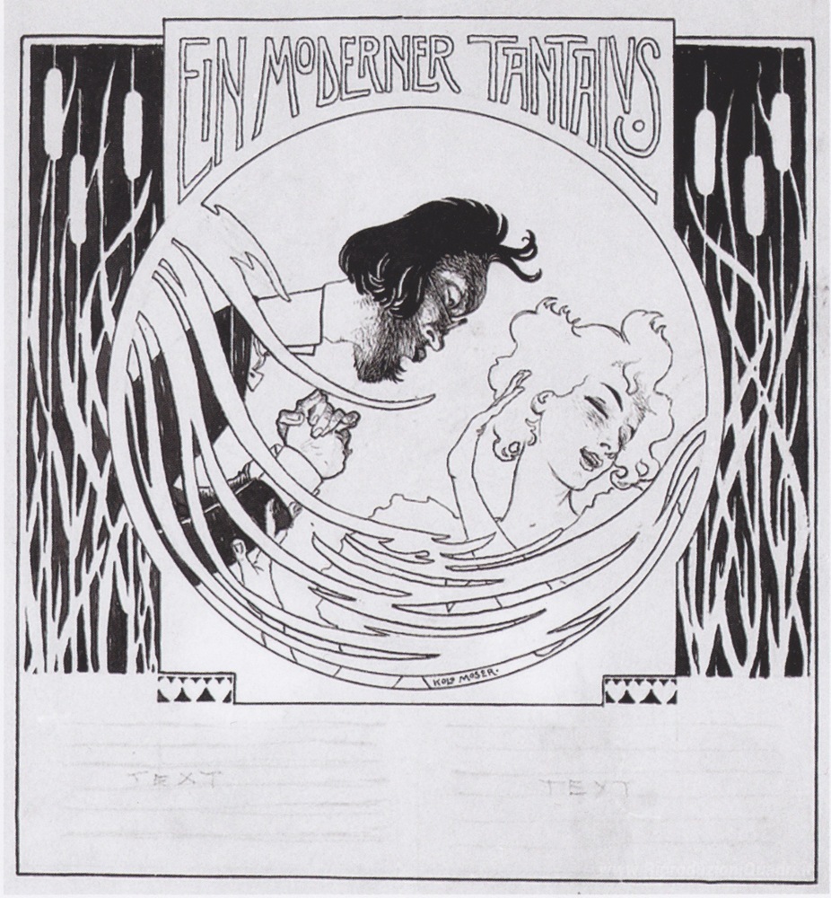 Ti offriamo una riproduzione artigianale su tela dell'opera famosa 'Un moderno Tantalo. Illustrazione per "foglie Meggendorfer.' di Koloman Moser, dal Museo delle Riproduzioni.