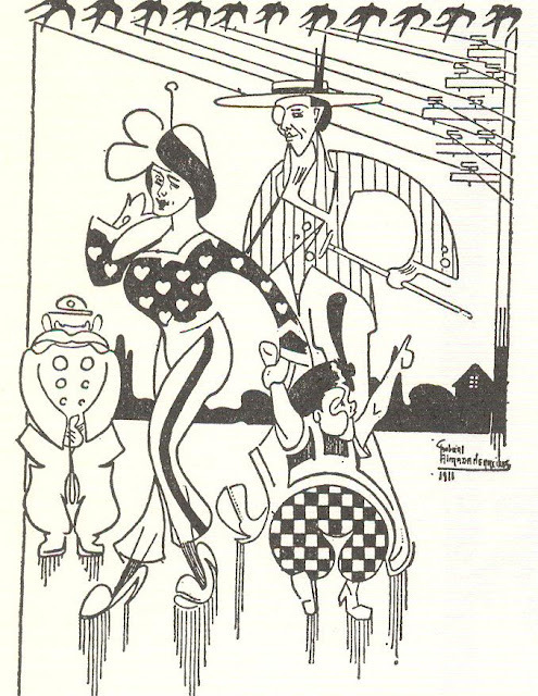 Ti offriamo una riproduzione artigianale su tela dell'opera famosa 'Una satira' di Jose de Almada-Negreiros, dal Museo delle Riproduzioni.