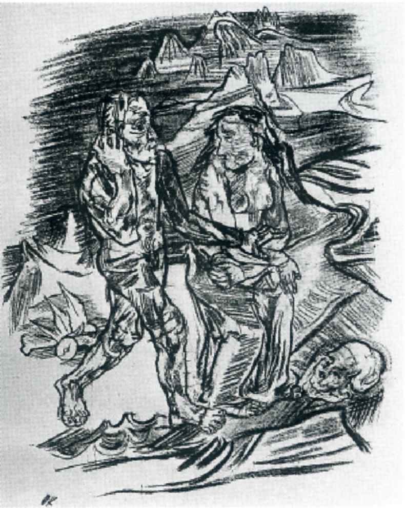 Ti offriamo una riproduzione artigianale su tela dell'opera famosa 'Uomo e donna sul Road to Death' di Oskar Kokoschka, dal Museo delle Riproduzioni.