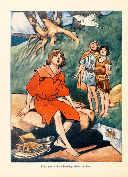 Ti offriamo una riproduzione artigianale su tela dell'opera famosa 'Videro una colomba hoverind sopra la sua testa' di Charles Robinson, dal Museo delle Riproduzioni.