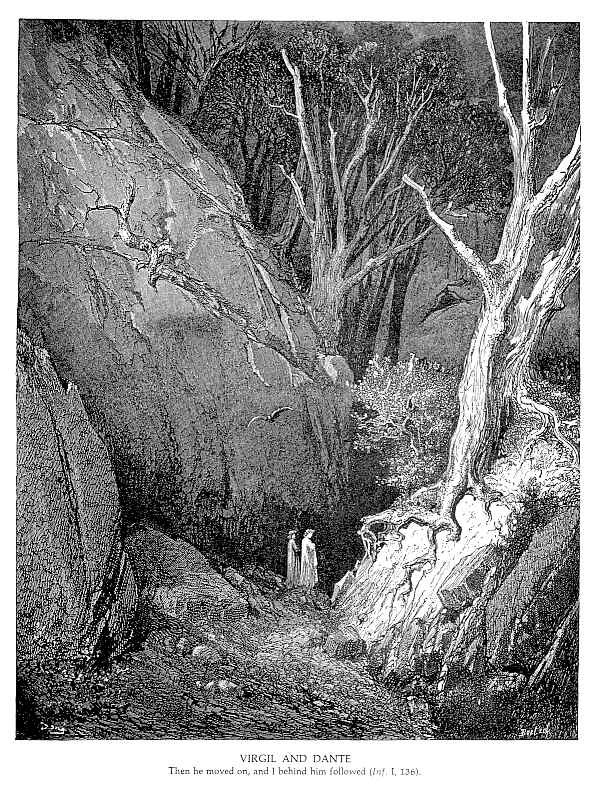 Ti offriamo una riproduzione artigianale su tela dell'opera famosa 'Virgilio e Dante' di Gustave Dore, dal Museo delle Riproduzioni.
