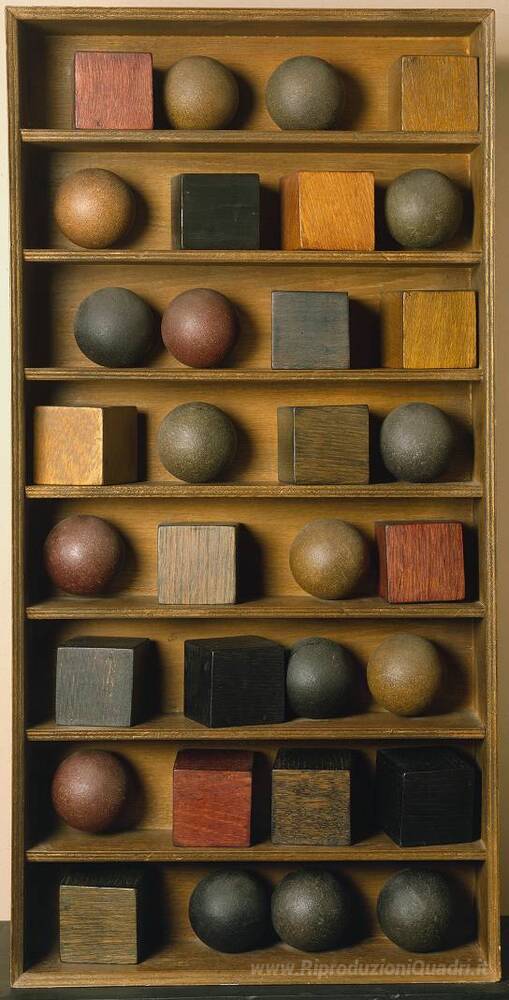 Ti offriamo una riproduzione artigianale su tela dell'opera famosa '16 Balls, 16 Cubi in 8 righe' di Pol Bury, dal Museo delle Riproduzioni.