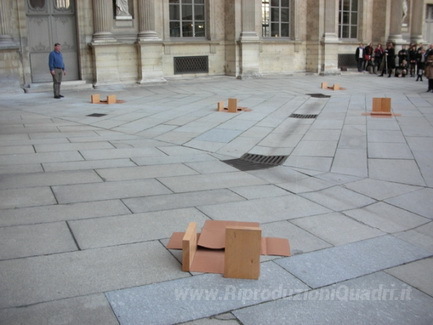 Ti offriamo una riproduzione artigianale su tela dell'opera famosa '5 Hal 2 Holz Slocke' di Franz Erhard Walther, dal Museo delle Riproduzioni.