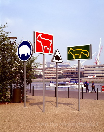 Ti offriamo una riproduzione artigianale su tela dell'opera famosa 'Animali fuggiti' di Julian Opie, dal Museo delle Riproduzioni.
