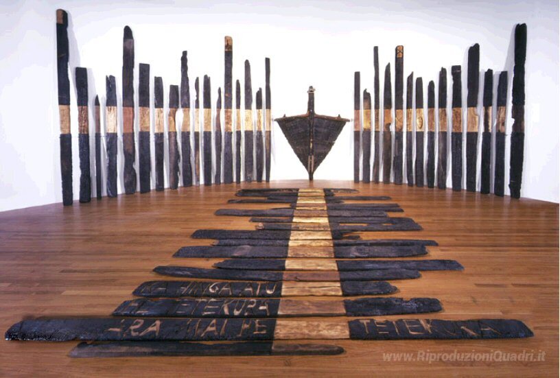 Ti offriamo una riproduzione artigianale su tela dell'opera famosa 'Black Phoenix' di Ralph Hotere, dal Museo delle Riproduzioni.