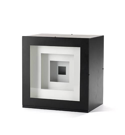 Ti offriamo una riproduzione artigianale su tela dell'opera famosa 'Carrés Lumineux' di Gregorio Vardanega, dal Museo delle Riproduzioni.